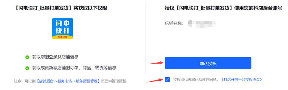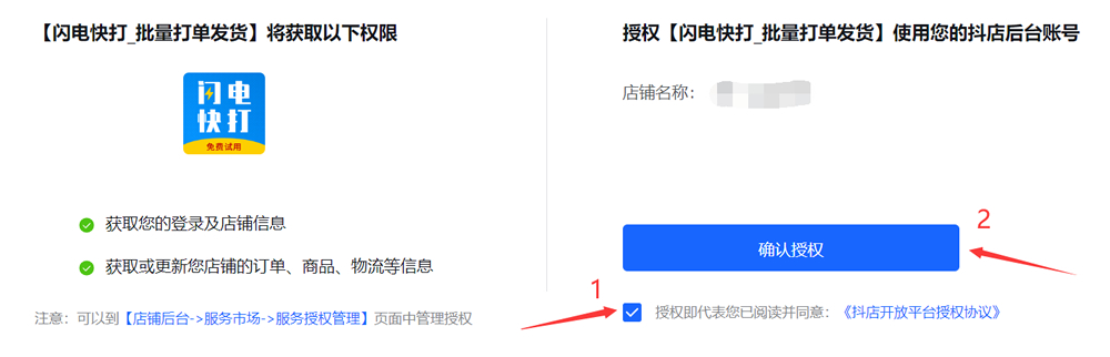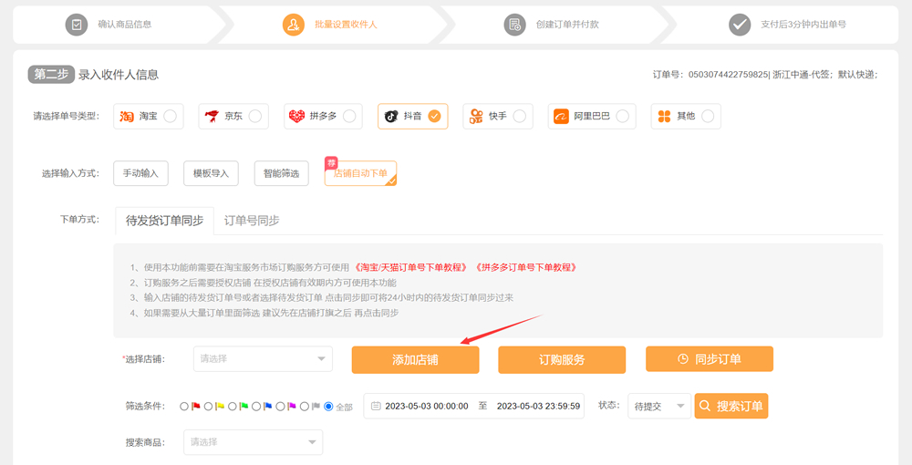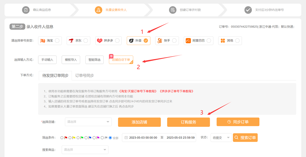 2、勾选抖音—店铺自动下单—订购服务