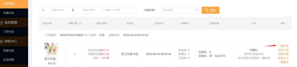 11、商家后台——订单列表——点击一键发货